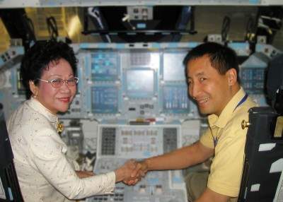 副總統進一步表示,今天她前往參觀美國國家太空總署(NASA),特別進入任務控制中心(mission control center)-也就是太空梭起飛的控制室,NASA並安排一位台裔太空人盧杰(Edward Lu)接待她,並在實體的太空梭上進行解說,因此她也首次登上了很高的太空梭駕駛座,這些都是美方的善意安排。