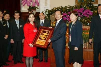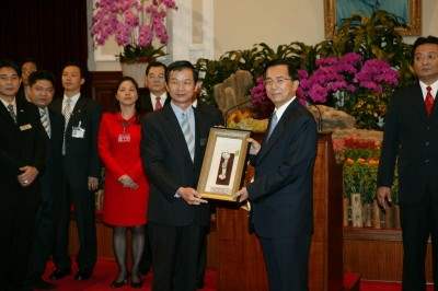 今天很高興能與這麼多位青商會會友於總統府見面,阿扁身為青商會的一員,會員編號1228號,和大家在一起覺得很溫暖,沒有距離,我以青商會會友出身為榮,我也相信各位先進也會以阿扁為傲。阿扁對於大家長期以來投入社會正義、服務人群的傑出表現,除了備感光榮外,更要代表政府給予高度的肯定與支持。