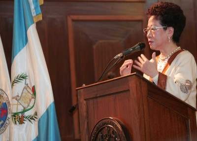 副總統表示,非常高興重回母校,讓她深感親切。尤其聖卡洛斯大學是中美洲學術重鎮,不僅是瓜國的驕傲,更是全世界的驕傲。 副總統指出,瓜國在歷經內戰與混亂後,在九六年經過多次協商完成和平協議,終於走上和平、民主與穩定的康莊大道。而台灣在一九四九年之際,當時的統治者實施戒嚴,人民基本權利遭受迫害,曾經上萬人被判刑,甚至失去寶貴生命,然而在一九八七年,戒嚴令終於解除,台灣走上自由民主之路,隨之在一九九六年,台灣人民有機會第一次選出自己國家的領導者。二○○○年陳水扁總統當選中華民國第十任總統,而她則是中華民國史上第一位女性副總統。二○○四年,陳總統與她再度受到民眾的肯定,當選連任。