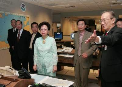 由於該中心隸屬於美國商業部之國家海洋及大氣總署,主要功能係藉由對颶風之精確觀察、預測及分析,提供相關結果予決策單位參考,以即時發布警訊,啟動各項防災機制,將人員傷亡及財產損失降至最低。因此,副總統除聆聽Dr.Jiing所作有關該中心功能及各項防風機制、應變措施等工作簡報外,並由Dr.Jiing全程陪同,實地參觀中心各項設施。