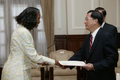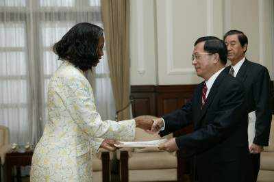 史瓦濟蘭王國新任駐台特命全權大使賈布黎索.桂布女士(Njabuliso Busisiwe Gwebu)今天向陳總統水扁先生呈遞到任國書。