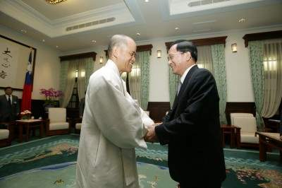 韓國思想史研究所創辦人金容沃教授下午由行政院文化建設委員會副主委吳錦發陪同,前來總統府晉見總統,總統府副秘書長黃志芳也在座。