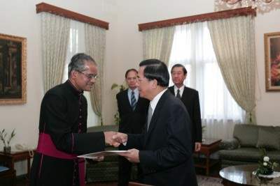 總統則告訴安博思代辦,3月26日台灣人民對中國通過「反分裂國家法」發聲而走上街頭,其訴求基本上與教宗所追求的民主和平理念正好相同。總統並感謝安博思代辦邀請他親自代表中華民國政府與人民參加教宗葬禮,他也相信教宗畢生追求世界和平的努力與貢獻將會永存世人心中。