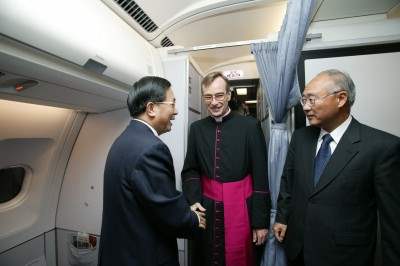 總統率領的「教宗追思彌撒特使團」抵達義大利羅馬達文西國際機場