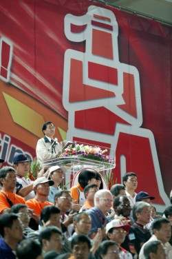 我們都知道,一面金牌的背後若是沒有運動員的奮鬥事蹟,它就僅是一塊金屬鑄造的飾物,本身並無太大的特殊意義,但是一面佩掛在冠軍選手身上、象徵最高榮譽的金牌,它所印照出的光輝,是運動員用勇氣、用毅力,在不斷的自我突破中所淬鍊出的卓越成績與榮耀。本屆全中會的口號─「勇敢追夢,世界看我」,代表著年輕人展現自我、以實力爭取榮譽的時刻已經到臨,就如同奧林匹克運動員信條所揭示:「運動最崇高的精神不在於取勝,而在於参加;不是要赢别人,而是要全力以赴」,阿扁始終認為,在競技場上不缺席、勇敢追求夢想的人,才有成功的可能,而最後的榮耀將屬於永不退縮、永不放棄的人。