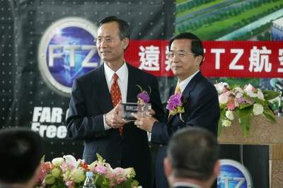 陳總統水扁先生今天上午在參訪遠翔FTZ航空貨運園區時表示,台灣過去透過「出口加工區」及「科學園區」的成立,奠定了台灣經濟奇蹟的兩大支柱。展望未來,希望透過「自由貿易港區」的開發與營運,為台灣產業的發展,再次開創另一頁光輝燦爛的歷史。