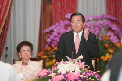 陳總統水扁先生及呂副總統秀蓮女士今天晚間在台北賓館與執政黨籍立委、縣市長、中執委及各縣市黨部主委茶敘,就大家共同關心的議題進行意見交換。