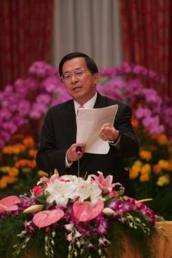 執政黨與在野黨最大的不同,就是國家的責任、人民的期待都在我們的身上。過去四年多的情況,大家都很清楚。過去我們曾經嘗試過各種方法來安定政局,包括去年12月11日的選舉,我們每一個人都盡了最大的努力。但是,很遺憾的是結果並不如我們所願,所以阿扁也辭去黨主席以示負責,這是我們必須誠實面對的。請大家冷靜地想一想,作為一個負責任的執政黨,作為一個想要永續執政的執政黨,未來三年多,到底是要重演過去四年多的對立空轉?還是應該要想辦法作一個微調、改變?如果國內繼續對立空轉,台灣如何面對對岸的威脅以及國際的壓力?答案其實各位比阿扁還要清楚。所以,從新內閣的組成、到扁宋會、到最近政府處理在野黨中國熱的問題,其實都是相同的思維。對於在野黨的一些作為、在中國的一些言行,都可以質疑、甚至批判,台灣人民也自有公斷,但是無論如何,不應該再走向全面對立和對抗的局面。
