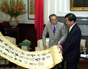 總統最後並再度感謝日華議員懇談會在促進台日關係上所作的努力,對於日華議員懇談會近來更進一步成立超黨派年輕議員友台組織,積極從事與我國議員進行往來與交流,他也表示欣慰,總統認為,這是「老幹新枝」的最佳結合,相信今後將可為兩國關係的提昇作出最大貢獻。