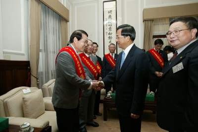 陳總統水扁先生今天接見「中華民國企業經營管理顧問協會」幹部及歷屆楷模當選人,並聽取訪賓對於我國技術服務管理、中小企業國際化及品牌全球化策略等三個面向的企業管理簡報。