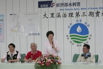在勘查大里溪整治工程時,副總統聽取經濟部水利署陳聲賢署長簡報,瞭解工程進度。副總統表示,九二一大地震的發生影響台灣地質甚大,加以全球溫室效應發生,氣候也產生不小變化,因此當暴雨產生,往往造成許多災難,希望在陳署長帶領下,整治工程能儘速完成,同時符合景觀與生態的需求,進一步為地方產業、文化等發展灌注一股新的活力。