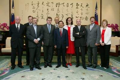歐洲議會友台小組訪問團一行包括:Malmstrom Cecilia(瑞典籍,自由民主聯盟)、Czarnecki Rydzard(波蘭藉,無黨籍)、Diaz de Mera Agustin(西班牙籍,人民黨團)、 Kuskis Aldis(拉脫維亞籍,人民黨團)、Mann Thomas(德國籍,人民黨團)、Pomes Javier(西班牙籍,人民黨團),一行由外交部次長歐陽瑞雄陪同,前來總統府晉見總統,總統府副秘書長黃志芳也在座。