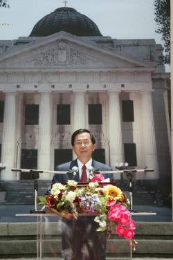 「國立台灣博物館」,大家都知道,也就是大家過去所熟知的「省立博物館」,最早的前身是「台灣總督府博物館」,與當時的「總督府」及「總督官邸」,也就是現在的「總統府」和「台北賓館」,是台北城內最雄偉,同時也是最美麗的三大建築物。隨著台灣政治的民主化,過去象徵著統治者權威的這些「機關」與「衙門」,也必須重新找回它們新的歷史定位。自從阿扁擔任台北市長以來,就積極推動「總統府」周邊地區的「空間解嚴」,希望將這些冰冷的政府建築物,轉化成為全民都能進入參觀的民主殿堂與文化資產。2000年政黨輪替以後,我們加速推動「總統府」與「台北賓館」的整修,不但強化了建築物本身結構的安全,也進行牆面清洗並加裝夜間照明設施,重新展現了以往的風華。而今天「國立台灣博物館」也完成整修重新開館,使得過去台北城最亮麗的三顆明珠以全新面貌展現在全體國人同胞面前,同時也以具體的行動賦予古蹟活化新的意義。