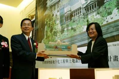 「國立台灣博物館」成立迄今將近九十年,以現有的眼光來看,展覽的空間難免有所不足而顯得侷促,為了滿足一個現代化博物館基本的需求,行政院文建會現正積極推動「國立台灣博物館」的擴建計畫,將以地下層串聯的方式,將對街的土地銀行舊址,同樣也是一棟歷史的古蹟,一起整合起來,增建展場及典藏陳列的空間。這項地下化工程涉及台北市政府主管的權責部分,文建會也已經初步與台北市政府取得共識,在此要特別感謝馬市長、感謝台北市政府大力的支持與協助,讓大家有機會為營造首都博物館的願景共同努力。