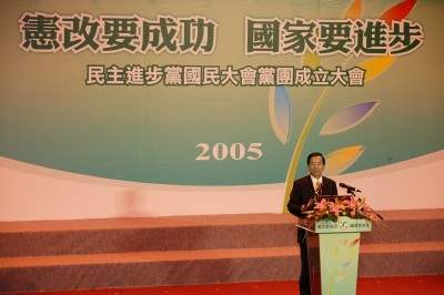 今天阿扁非常的高興,也倍感榮幸,能夠受邀前來參加我們民主進步黨國大黨團的成立大會,首先要向所有新科的國大代表表示最高的敬意與恭喜之意,因為各位即將為台灣憲政發展史上最關鍵的一刻揭開序幕,大家不但在為台灣寫歷史,同時也將從此而留名青史。
