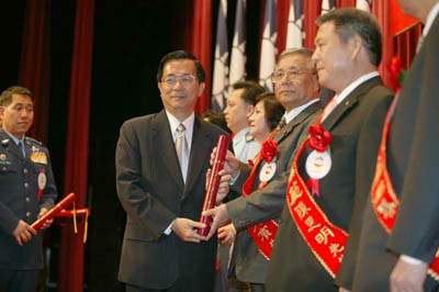 光榮的一天,屬於辛苦付出的人!阿扁今天很高興,能夠在九三軍人節前夕,在呂副總統的陪同下,出席「九十四年軍人節慶祝大會」,頒獎表揚今年榮膺敬軍模範的各位女士、先生,以及當選國軍楷模、模範團體主官的優秀幹部們。