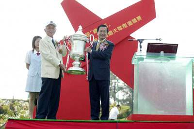 大家都知道,高爾夫源自蘇格蘭,在世界各地有超過五百年的歷史傳承。而高爾夫球運動在台灣的發展,也有近百年的歷史,是最不受年齡性別的限制、老少咸宜的健身運動。國內目前投入高爾夫運動的人口每年平均約一百五十萬人次,可見得高爾夫球的發展已逐漸走上大眾化、普遍化,除此之外,每年在台灣舉辦的大型高爾夫賽事也逐年增加,與國際高爾夫球界交流密切頻繁。藉此機會,阿扁要特別感謝辜資政、中華民國高爾夫協會、台灣高爾夫球俱樂部、以及所有高爾夫球界的朋友們,感謝大家長期推動高爾夫運動不遺餘力的付出與貢獻,也期許這項非常健康且有意義的運動能在台灣繼續蓬勃發展。