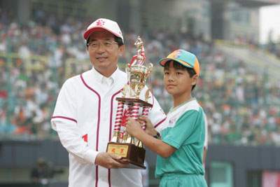 今天在場的除了現役的中華職棒成員之外,還有「紅葉少棒隊」的前輩、以及「第一屆總統盃全民樂棒球」獲勝隊伍。大家都知道,「紅葉少棒」曾經為台灣創下輝煌的歷史紀錄,成功地將台灣棒球推上國際舞台,如今所謂的「紅葉精神」早已經是「台灣精神」在世界棒壇最佳的代名詞,更是令所有台灣人民都感驕傲的光榮傳統。今年,雲林縣政府為了將棒球運動擴大推廣到社會各個層面,率先舉辦了「第一屆總統盃全民樂棒球」,讓所有的小朋友、不分男女都有機會參加棒球比賽。所以,今天這個場景可說是台灣棒球界「薪火相傳、全民參與」的最佳示範。