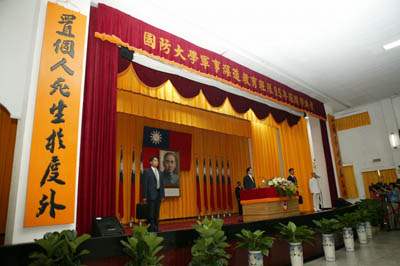 最後,阿扁要期勉大家在未來這一年的學習生活中,能夠放開心胸接納各項新的軍事理論與科技觀念,鍛鍊強健的體魄,為將來擔負更重要責任作最好的準備。阿扁也利用今天的機會,除了祝福大家學業順利、身體健康之外,也要提早預祝各位學官及家人中秋佳節平安、團圓、愉快。