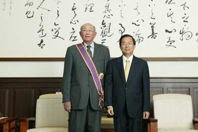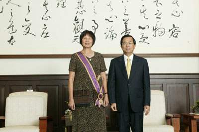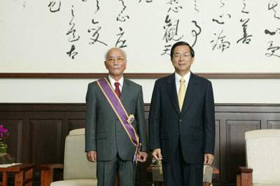 贈勳儀式上午十時在總統府舉行,三位受勳人的親友、行政院體育委員會主委陳全壽、中華奧林匹克委員會主席黃大洲及總統府秘書長游錫堃等人也在場觀禮。