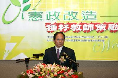 陳總統水扁先生今天出席由總統府憲政改造辦公室與行政院研考會主辦的「憲政改造種籽教師策勵營」,並致詞。