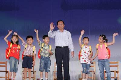 陳總統水扁先生今天晚間參加九二一重建六週年「愛與勇氣」月光紀念會,除了和五位九二一之後出生、今年剛上小學一年級的小朋友一起說故事,並在說完故事後,親切地鼓勵每位小朋友,希望他們健康快樂的長大。