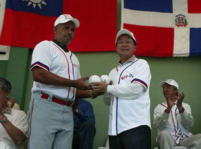 本人了解貴國有一百多個選手在美國職棒大聯盟打棒球,多明尼加的選手現階段在美國的大聯盟打擊率和打點排行榜不是第一就是第二,真的了不起。棒球可以說是中華民國(台灣)的國球,我國目前也有三個選手在美國職棒大聯盟打球:紐約洋基隊的王建民,科羅拉多洛磯隊的曹錦輝,以及洛杉磯道奇隊的郭泓志,他們是台灣人的光榮與驕傲。其中在洋基隊大放異彩的台灣投手王建民,本季才剛升上大聯盟,表現就令洋基球迷刮目相看,颳起一陣「台灣旋風」。無獨有偶的,王建民在洋基隊最好的朋友名叫羅博森卡諾(Robinson Cano),本球季和王建民一起升上大聯盟,成為莫逆之交。各位知道卡諾是哪一國人?-就是多明尼加人!「阿民加阿諾」是洋基隊的「明日之星」,也讓台灣和多明尼加因棒球而更加親近。