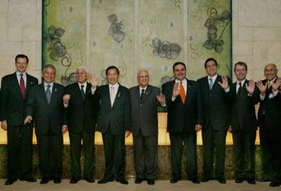 高峰會於中午十二時在尼加拉瓜國歌聲中揭開序幕,主辦國尼加拉瓜共和國總統博拉紐(Enrique Bolaños Geger)首先致詞,繼由陳總統致詞,致詞結束後,與會九國及中美洲統合體、中美洲經濟統合體、中美洲銀行領袖十二人步出會場一字排開接受媒體拍照,名單為:尼加拉瓜總統博拉紐、陳總統、薩爾瓦多共和國總統薩卡(Elias Antonio Saca)、貝里斯總理穆沙(Said W. Musa)、巴拿馬共和國總統杜里荷(Martín Torrijos Espino)、宏都拉斯共和國總統馬度洛(Ricardo Maduro Joest)、瓜地馬拉共和國總統代表外交部長布里斯(Jorge Briz Abularach)、哥斯大黎加共和國總統代表外交部次長瓦爾佳斯(Marco Vinicio Vargas)、多明尼加共和國總統代表外交部次長基里亞尼(Juan Guiliani)、中美洲統合體秘書長基紐內斯(Aníbal Enrique Quiñonez)、中美洲銀行總裁布勞迪根(Harry Brautigan)、中美洲經濟統合體秘書長羅達斯(Haroldo Rodas)。