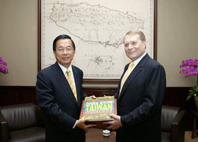 歐洲議會友台小組主席亞森柏斯基上午由外交部次長歐陽瑞雄陪同,前來總統府晉見總統,總統府副秘書長黃志芳也在座。