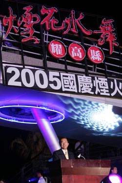陳總統水扁先生今天晚間前往高雄縣茄萣鄉興達港參加「中華民國94年國慶煙火晚會」,致詞期勉國人在追求人生理想與目標時,抱持「煙火精神」-剎那即是永恆,蓄積能量,在需要時綻放奪目光芒。