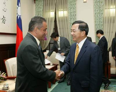 布里仙諾副總理伉儷上午由外交部次長黃瀧元陪同,前來總統府晉見總統,總統府秘書長游錫游錫堃也在座。