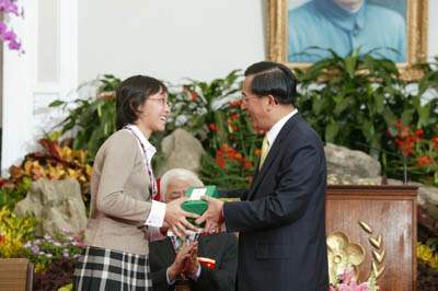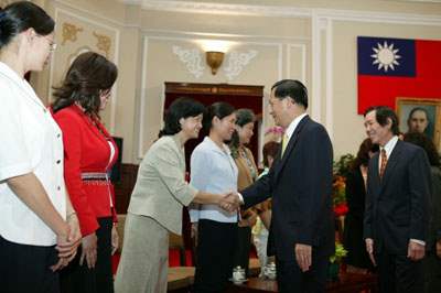 94年推動環保有功團體代表暨個人上午由行政院環境保護署署長張國龍、教育部次長范巽綠陪同,前來總統府接受總統道賀。