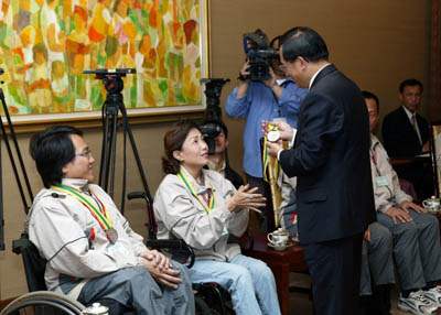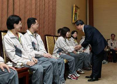 選手及教練除感謝總統撥冗接見,並對總統與夫人吳淑珍女士長期以來支持並關心身心障礙朋友,表達最高的謝意。