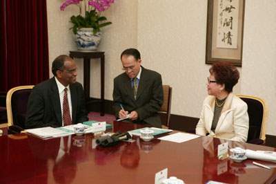 Taj Hamad秘書長下午由外交部研究設計發展委員會主任委員楊黃美幸陪同前來總統府拜會副總統。