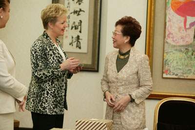 副總統指出,芬蘭的面積是台灣的八倍,人口則僅有台灣人口的四分之一,但相較於台灣國民所得將近20000美元,芬蘭則享有高達32000美元的國民所得;在民主政治進程方面,芬蘭是歐洲最早享有投票權的國家,而台灣也在1935年起開始舉辦第一次投票;在兩性平權方面,芬蘭不僅有女性總統主政,國會及內閣成員也有將近一半是女性,而台灣則是到2000年才由她成為第一位民選的女性副總統。副總統告訴訪賓,和其他亞洲國家的女性政治人物不同,她是因為個人長期以來投入民主運動的奮鬥及努力,最後成為副總統,而不是因為父兄或是丈夫等家族因素。