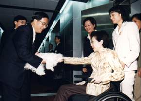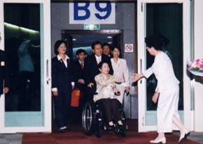 當總統夫人所搭乘的班機靠抵空橋後,總統抱著夫人心愛的馬爾濟斯犬HONEY進入機艙歡迎;五院院長、總統府秘書長、國安會秘書長等政府首長也參加了歡迎儀式。