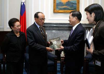 羅慕斯前總統晚間由外交部部長陳唐山陪同,前來總統府拜會總統,總統府副秘書長黃志芳也在座。