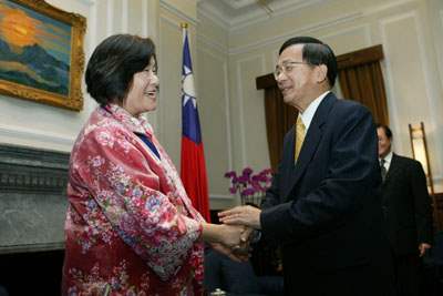 陳總統水扁先生今天上午接見勵馨基金會執行長紀惠容,並對她榮獲世界兒童獎章(World of Children Awards)凱洛格兒童發展獎(Kellogg's Child Development Award)表達祝賀之意。