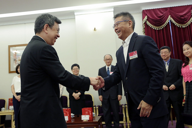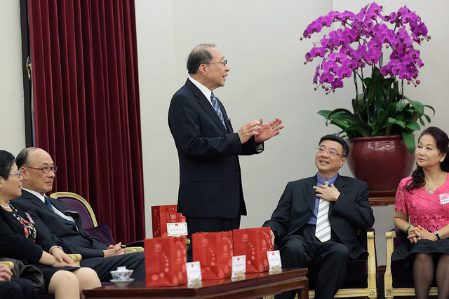訪賓一行包括財團法人慈月社會福利慈善基金會董事長林保雍、執行長卓榮泰等人,由衛生福利部次長蔡森田陪同,前來總統府拜會副總統。
