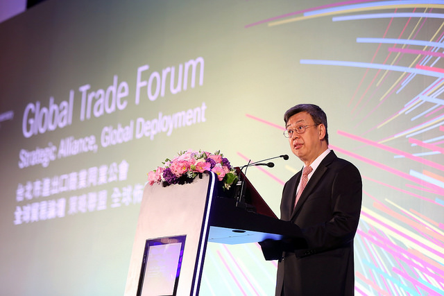陳建仁副總統今(15)日上午出席「全球貿易論壇」,強調政府除將積極推動「新南向政策」,並以價值創造代替價值獲取,協助廠商突破重圍,使臺灣與各國間經貿商機極大化,達到全面雙贏局面。