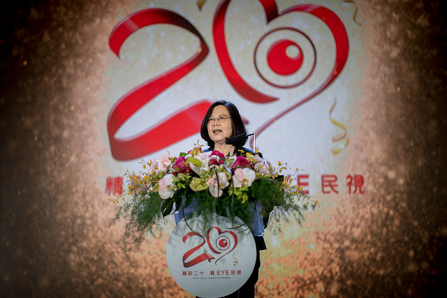 總統致詞表示,看到這麼多貴賓到場,證明民視在大家心中的重要性,她很高興並祝福民視展開新的局面。民視在蔡同榮創辦人的奔走下,從七千多個發起人,到三萬多名股東,靠著不斷匯集的民間力量,一點一滴累積,終於克服萬難,成立開播。這段歷史讓我們了解,只要臺灣人團結,沒有做不到的事。