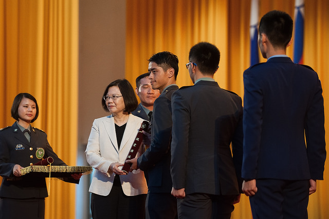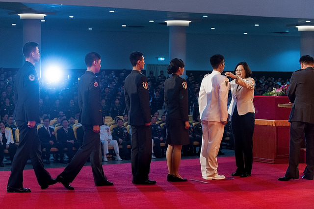 第二,是要以總統的身分,親手為各位掛上軍階,表達我最高的重視。能夠看到年輕的各位畢業生,在經過嚴格訓練後,準備邁向軍旅生涯的起點,我真的為大家感到非常驕傲。