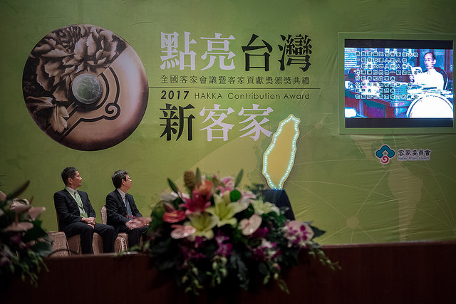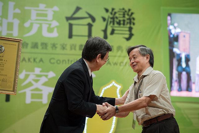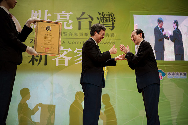 隨後,副總統與客委會主委李永得共同進行「點亮臺灣新客家儀式」,並親頒獎項予曾貴海醫師及羅肇錦教授等2位「客家終身貢獻獎」得主。