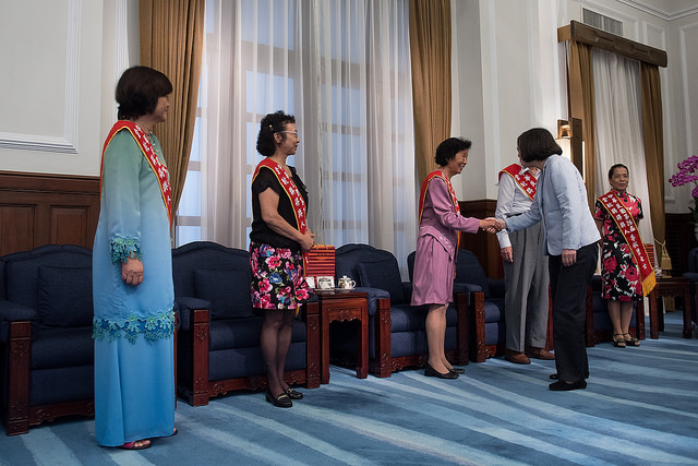 訪賓一行由「中華民國志願服務協會」理事長張寶方及「臺北市志願服務協會」理事長藍高玉雲陪同,前來總統府晉見總統,總統府副秘書長劉建忻及衛福部次長呂寶靜也在座。