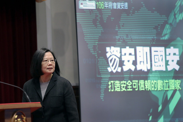 蔡英文總統今(11)日上午出席在總統府舉辦的「106年府會資安週」,除說明政府致力於更健全的資安防護體系,並期許各相關部會建立國家級的資安機制與團隊,強化資安產業發展,共同打造安全可信賴的數位國家。