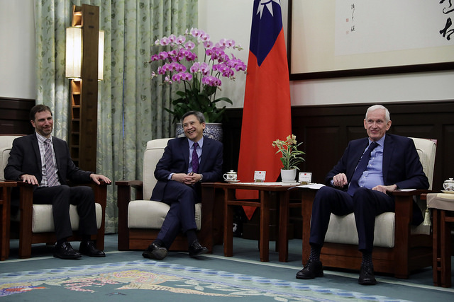 訪賓一行由外交部長李大維陪同,前來總統府晉見總統,總統府秘書長吳釗燮也在座。