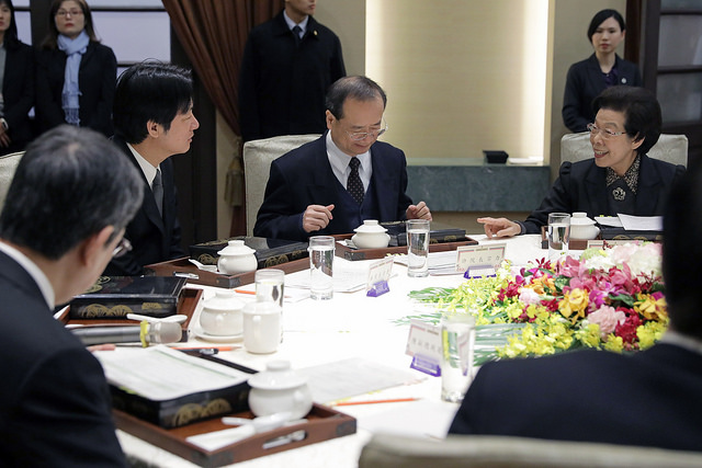 總統開場致詞時表示,很高興邀請五院院長來到總統府。與五院院長的座談是過去行之有年的傳統,透過這個機會,要感謝他們的辛勞之外,也期待大家藉此交換意見,讓政務推動更順利。