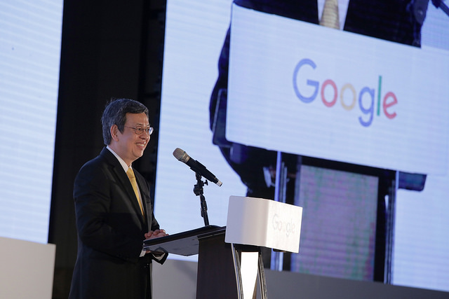 副總統致詞時表示,今天非常高興前來見證「Google智慧台灣計劃」的啟動典禮。Google今天能成為全球創新科技的領導者,絕非偶然,其企業文化蘊含「合作」與「創造力」兩項因子,因此才能成為領頭羊,讓世界刮目相看。而Google這種強調合作與創新的企業精神,正是臺灣強化科技實力所需要的。