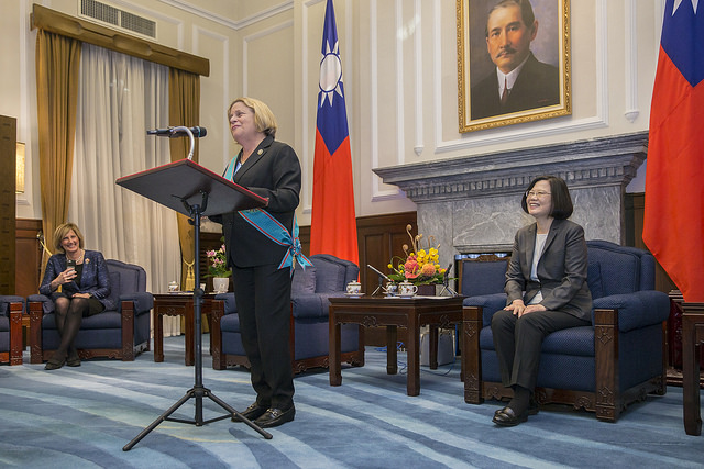 蔡英文總統今(2)日上午頒授美國聯邦眾議院外交委員會榮譽主席羅斯蕾緹南(Ileana Ros-Lehtinen)「特種大綬卿雲勳章」,表彰她促進臺美關係發展的貢獻。