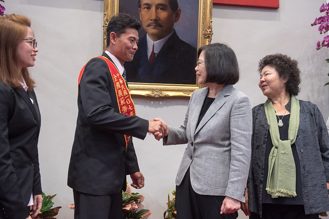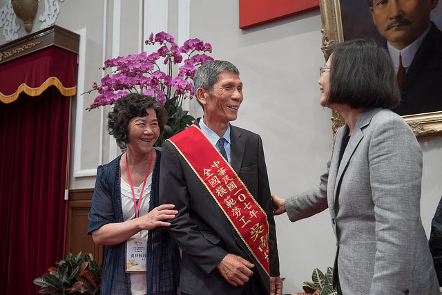 蔡英文總統今(1)日上午接見「107年度全國模範勞工及眷屬」,感謝勞工朋友對臺灣發展的貢獻,並說明政府將持續提高基本工資、打造更優質工作環境,以保障勞工的權益。